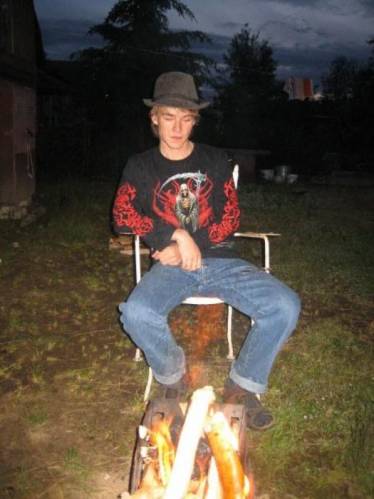 Ночь, звезды...Туман, клочьями висящий на елях, раскинувших свои лапы над головой... Костер, запах жарящегося мяса, бокал с напитком в руке... романтика)